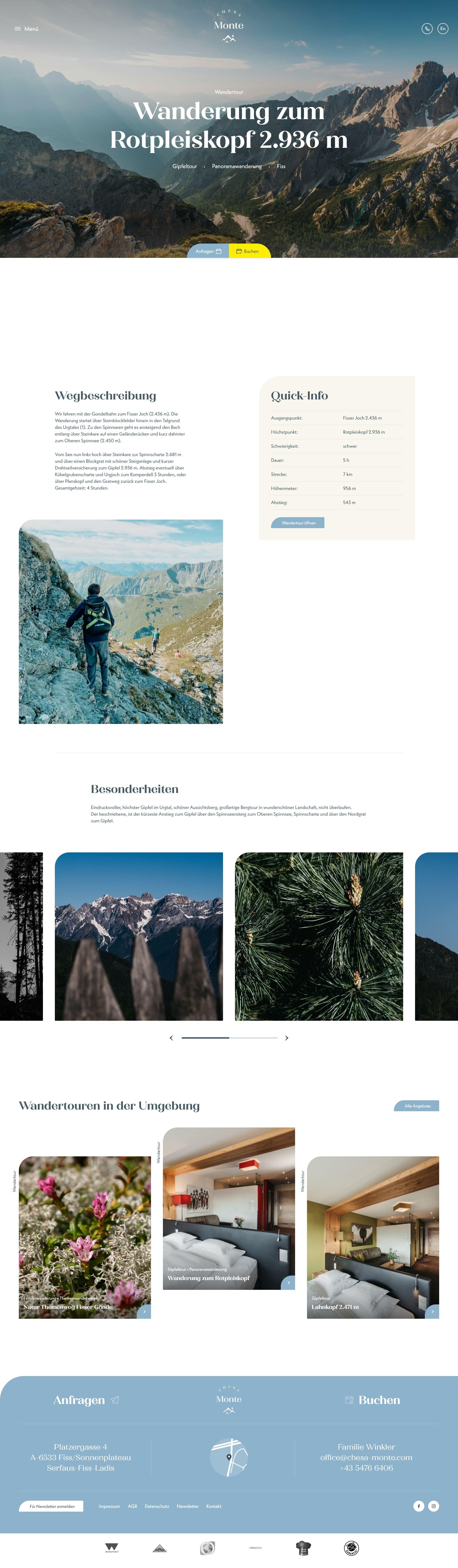Die Gestaltung verbindet traditionelle Materialien und alpine Farbwelten mit einem frischen, urbanen Look, der den neuen Markencharakter sichtbar macht. Die neue Wortwelt rund um Charezza schafft eine eigene Stimmung und begleitet Nutzer:innen durch die gesamte Seite – von den Zimmern über Genuss bis zum Aktivangebot in Serfaus-Fiss-Ladis.