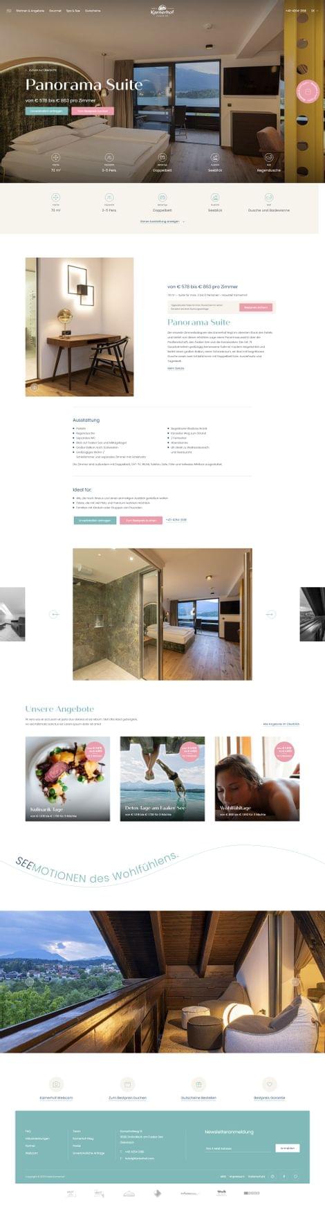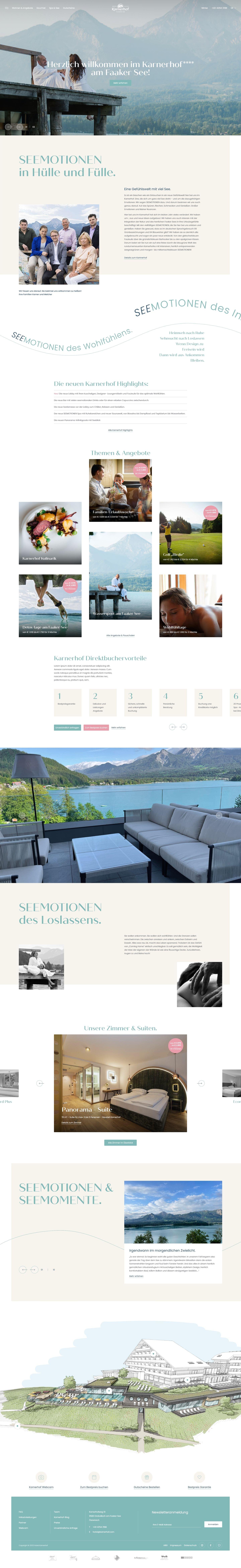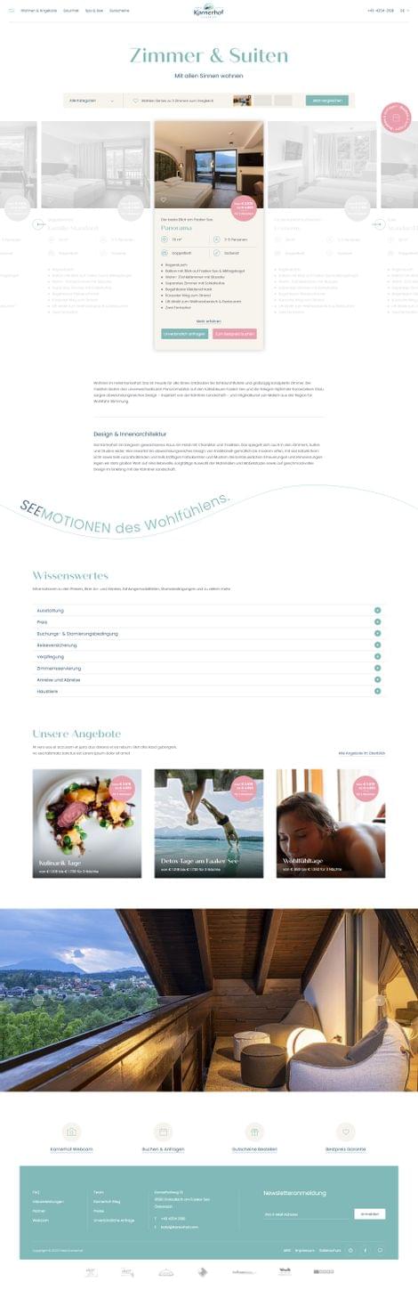 Zeitgleich mit dem Hotelumbau hat auch die Erarbeitung einer neuen Markenpositionierung und -linie stattgefudnen. Im Zuge dessen sind auch diverse Printprodukte erarbeitet worden sowie die Website gelauncht worden. Passend zum neuen Interieur und dem erweiterten Angebot im Hotel, wird der Besucher nun auch im Web bestens abgeholt. Dieser kann sich dank dem modernen Webauftritt, einfach und übersichtlich durch den interaktiven Content navigieren und einen ersten Eindruck vom umfangreichen Hotelangebot verschaffen.