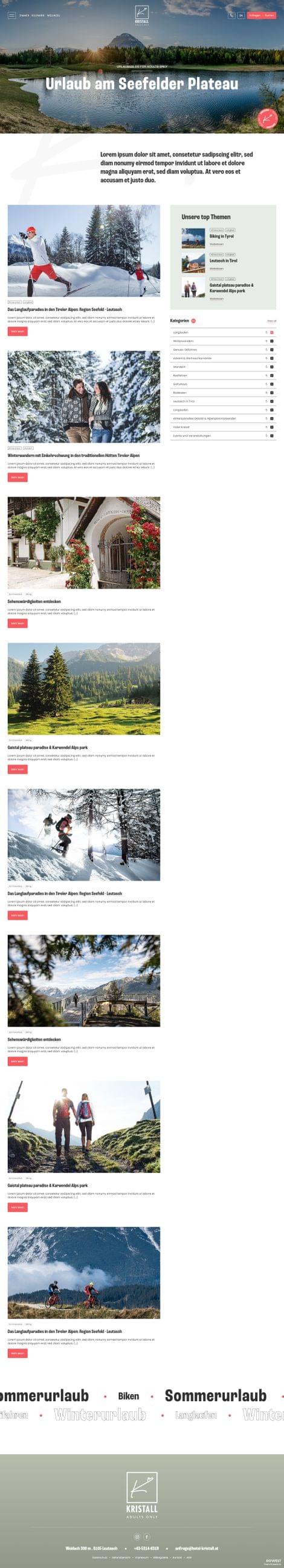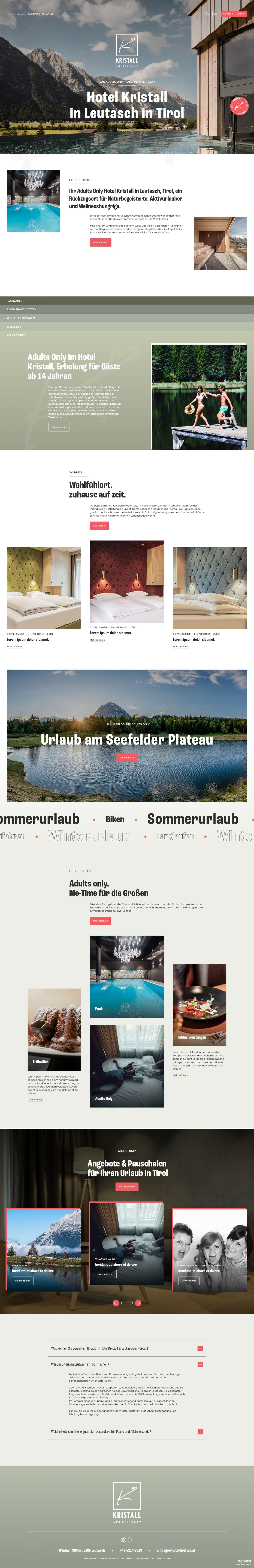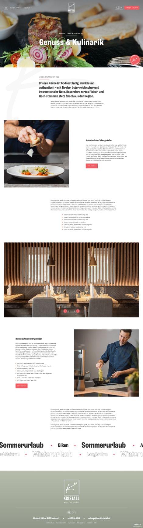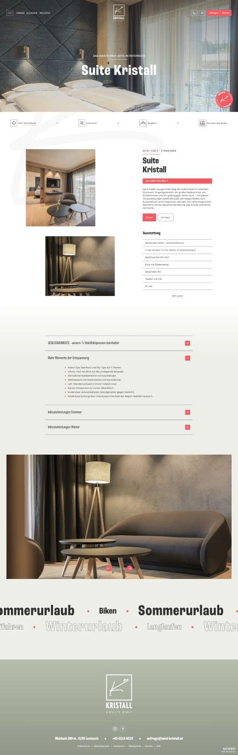Ziel der neuen Website für das Hotel Kristall in Leutasch war es, die besondere familiäre Gastfreundschaft, die ganz besonderen Wohlfühlmomente im neu gestalteten Hotel und die Naturverbundenheit in ein modernes, klares Nutzererlebnis zu übersetzen.
