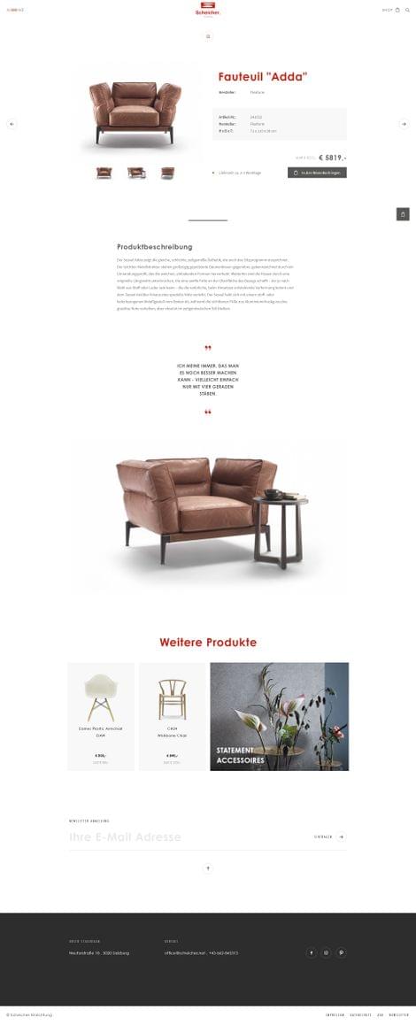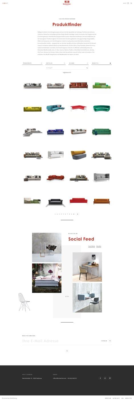 Planung, Produktauswahl, Lieferung und Montage von zeitlosen Gesamtlösungen für ein qualitätsvolles und nachhaltiges Wohnen und Schlafen, sind die Spezialität des Salzburger Familienunternehmens. Das Online-Schaufenster für die Designer Möbel soll gemäß dem modernen Standard im Web den Content in den Vordergrund stellen. Das Zusammenspiel aus schönen Bilderwelten, dynamischem Aufbau und dem gezielten Einsatz vom Weißraum und kleinen Effekten, weckt beim User das Verlangen sich durch die Produktwelten zu klicken - sowie im Schauraum in Salzburg selbst vorbeizuschauen. Individuelle Einzelstücke namhafter Designer können direkt im Online-Shop erworben werden.