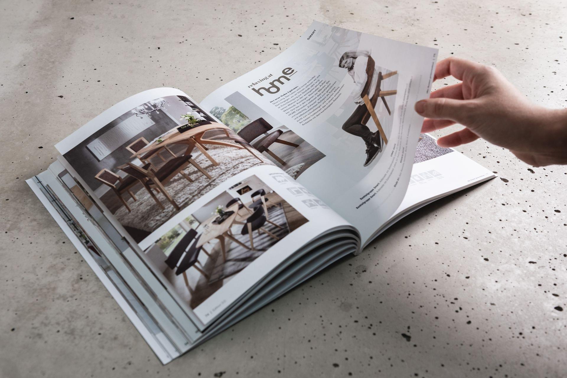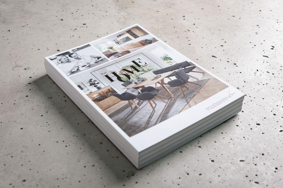 Die Produkte von Schösswender sind in drei Kategorien unterteilt und jede spricht auf B2C Ebene eine andere Zielgruppe an. Basierend darauf ist für jede Kategorie ein eigenes Konzept entwickelt worden. Somit bekommt jede Linie ihren eigenen Stil. Hervorheben möchten wir hier insbesondere das Wohnbuch für die Kategorie Essplätze. Es dient dem Kunden als Inspirationsquelle und zeigt die Möglichkeiten auf, die Schösswender Möbel bieten. Mit einem Inhalt von über 100 Seiten, einem schön gebundenen Softcover und der veredelten Titelseite durch eine Heißfolienprägung, zieht es die Blicke auf sich.