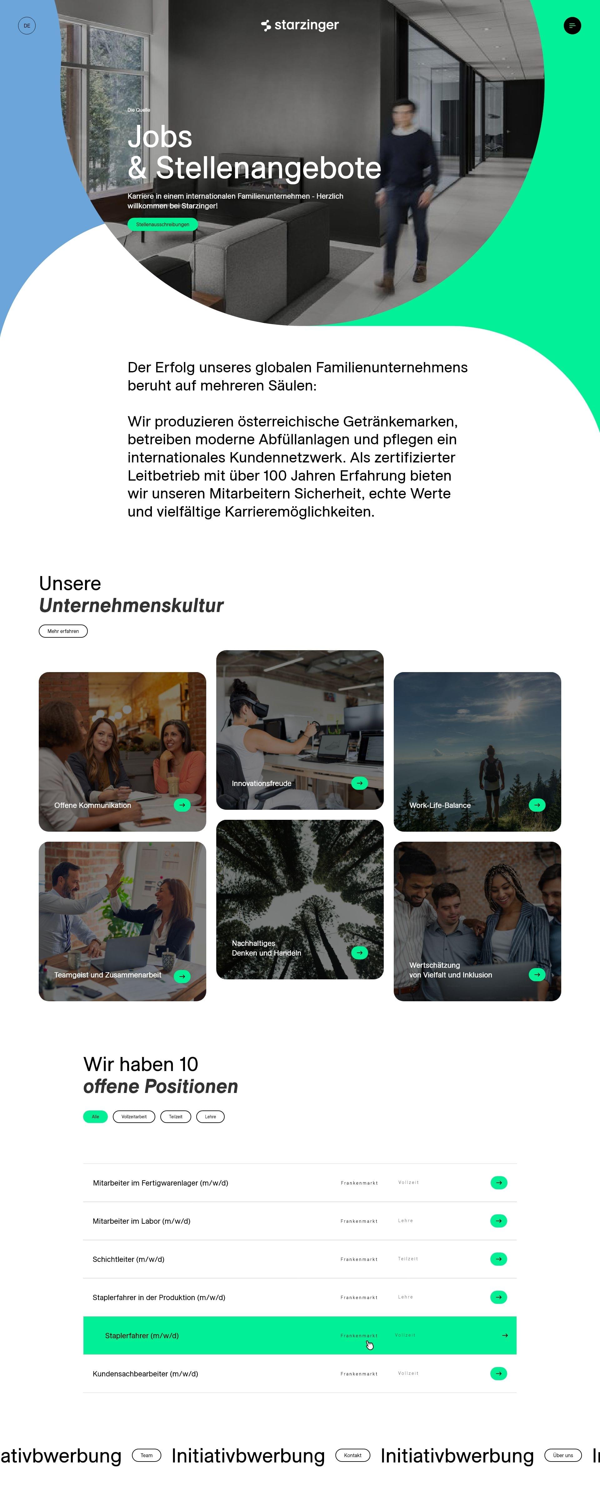 Beim Redesign der Website des Lohnabfüllers Starzinger lag der Fokus darauf, eine gestalterische Lösung zu entwickeln, die Funktionalität mit Emotion vereint. Ziel war es, Starzinger als vertrauenswürdigen Partner zu präsentieren, der Kundenideen in die Realität umsetzt. Die Gestaltungselemente wurden so angepasst, dass sie die individuelle private Labeling-Strategie und Innovationskraft des Unternehmens widerspiegeln, während sie die emotionale Reise der Produktvermarktung unterstützen. Die Herausforderung bestand darin, durch das Design die Themen Zusammenarbeit, Vertrauen und den innovativen Geist von Starzinger hervorzuheben.